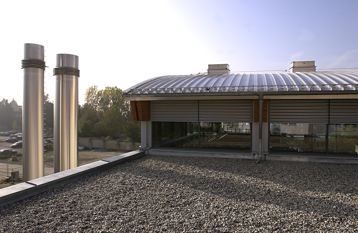 FPO-Folien-Abdichtung mit Plattenbelag, Zambelli-Profilblecheindeckung
