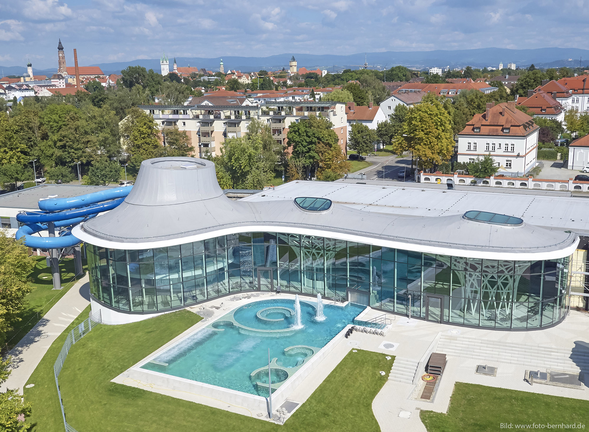 Die Generalsanierung des in die Jahre gekommenen Aquatherm der Stadtwerke Straubing wurde genutzt, um mit einem neu gebauten Wintergarten das vorhandene Hallenbad zu erweitern und den Innenbereich mit den Außenanlagen zu verbinden. Der 50 m lange, 10 m breite und 14 m hohe Neubau wird von einer gewundenen, filigranen Stahlkonstruktion getragen. Er ist geprägt von großflächigen Glasfassaden sowie einem Turm mit zwei bis zu 100 m langen Wasserrutschen und erhöhter Galerie im Inneren, die formgebend für das futuristisch wirkende Dach sind.