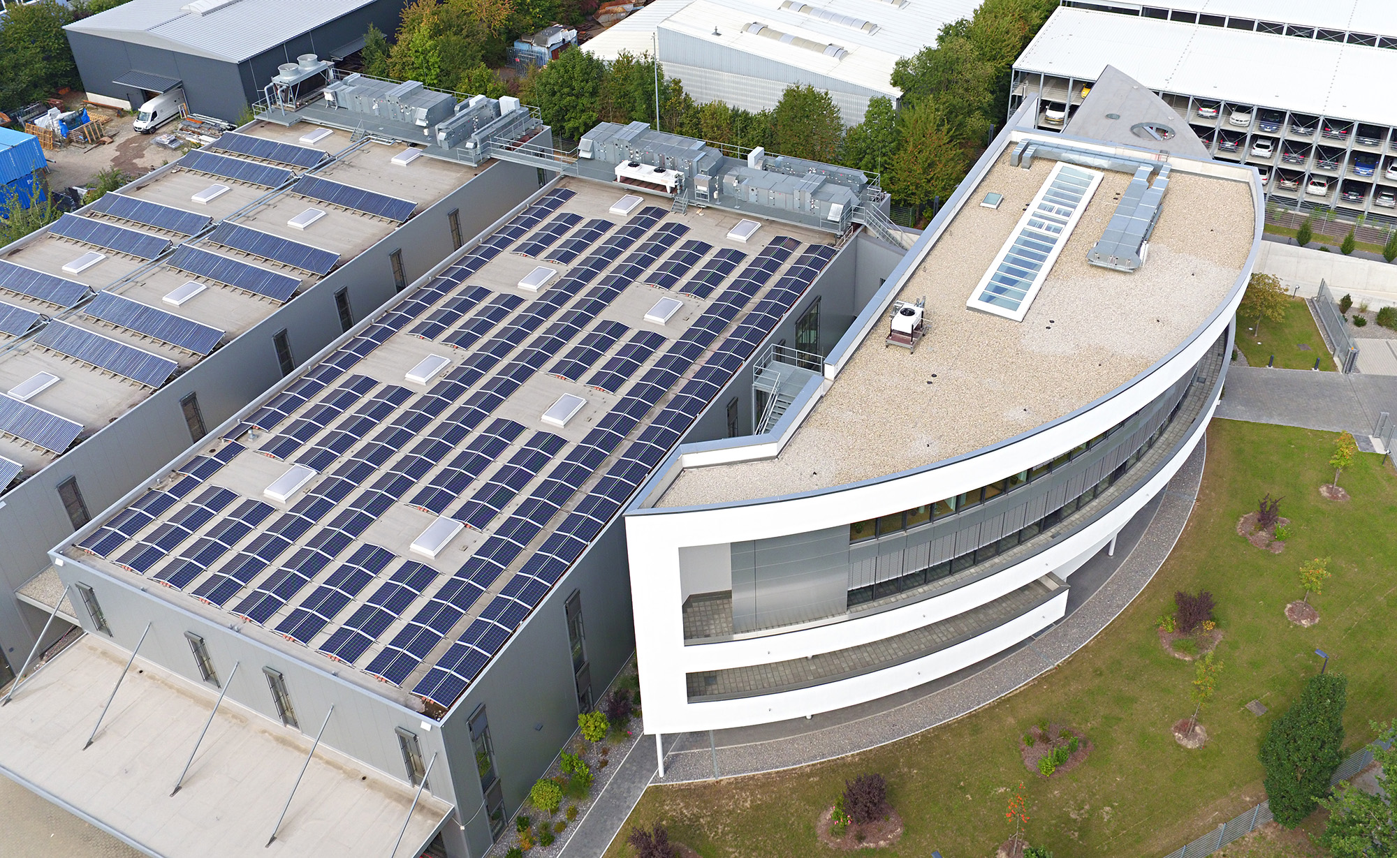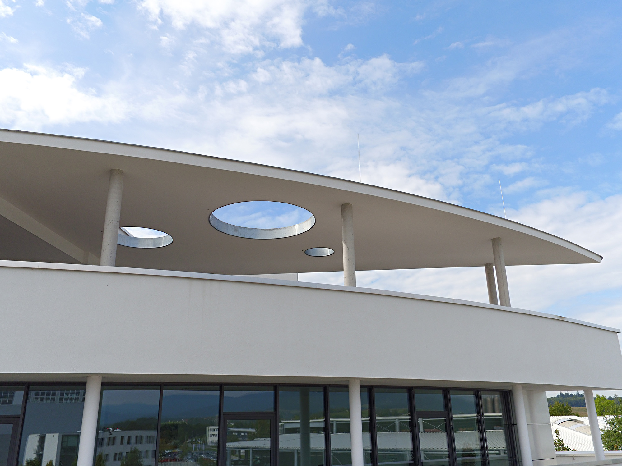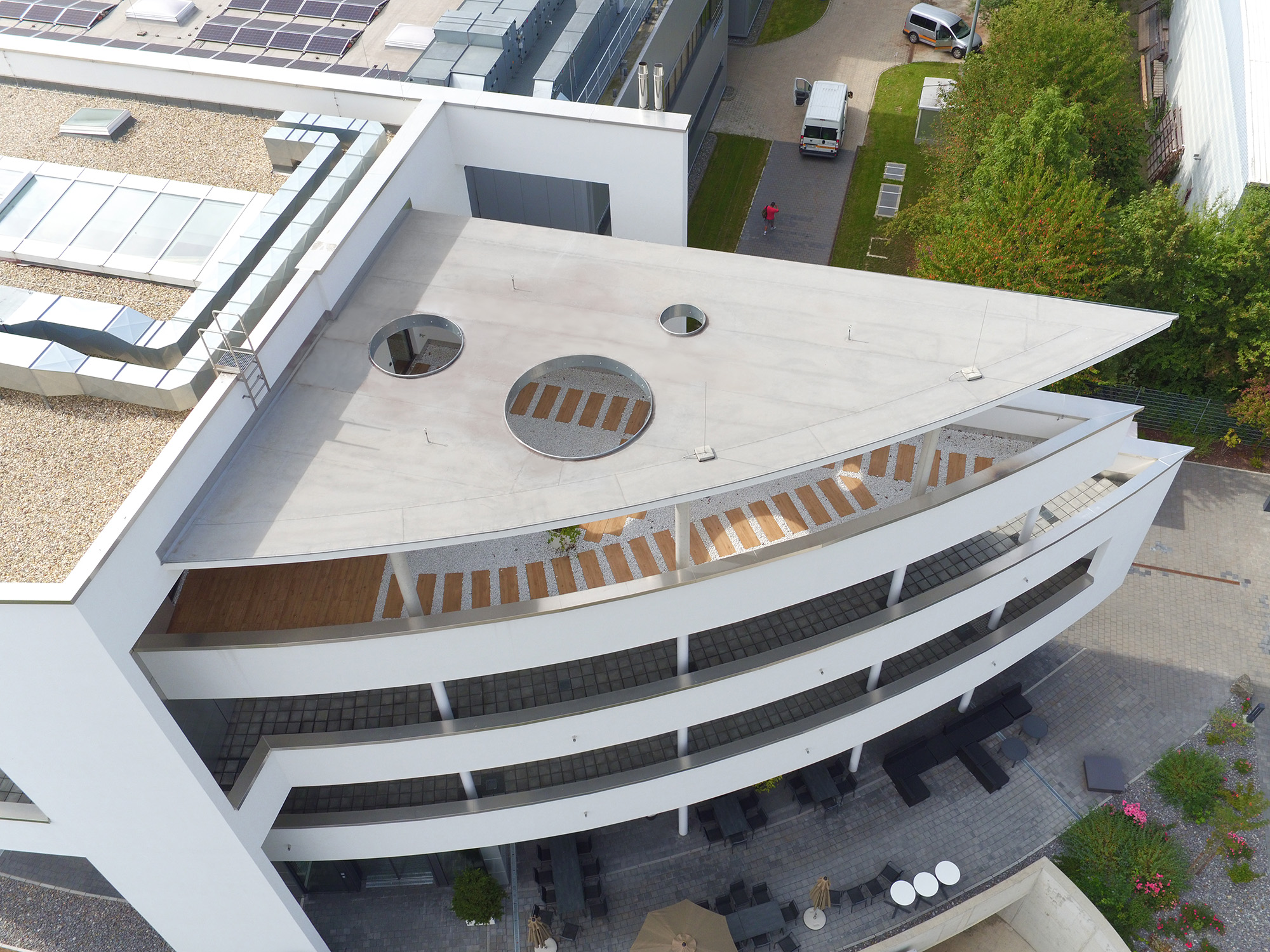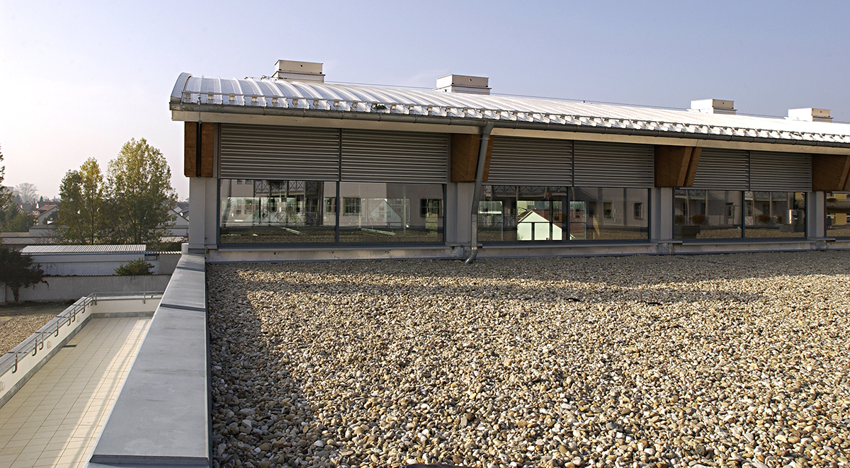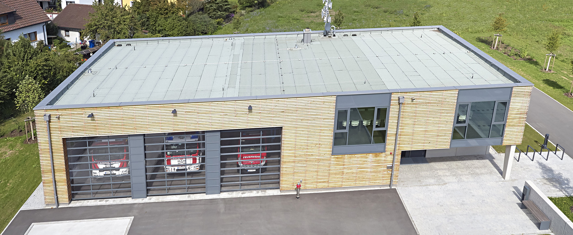 FPO-Folien-Abdichtung mit Kiesauflast und Trapezblech-Fassadenverkleidung