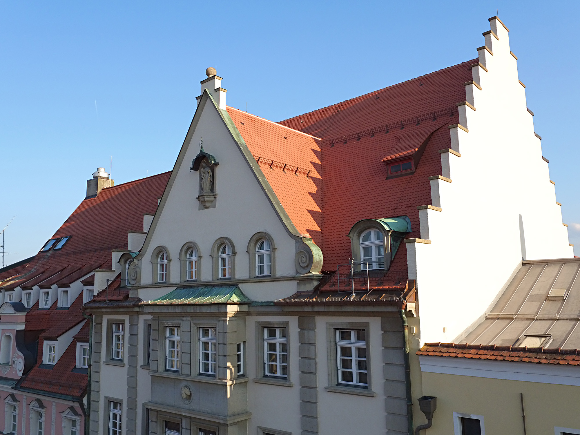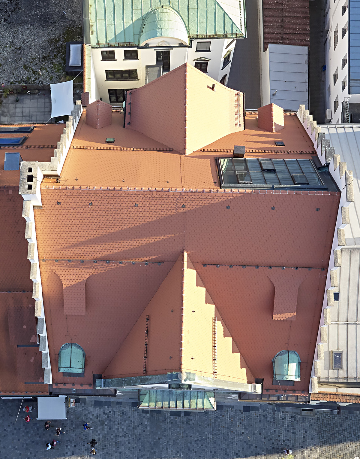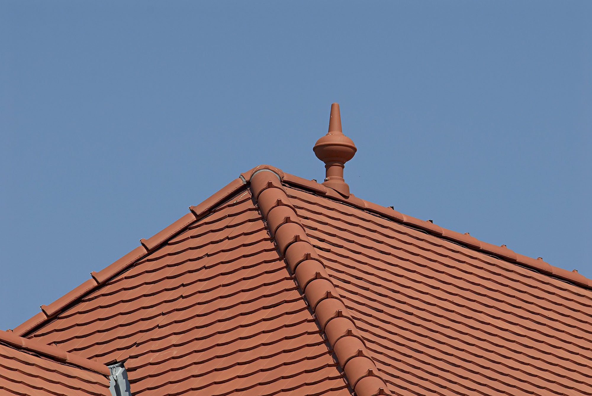 Biberschwanzziegeleindeckung, naturrot, Spenglerarbeiten aus Kupfer